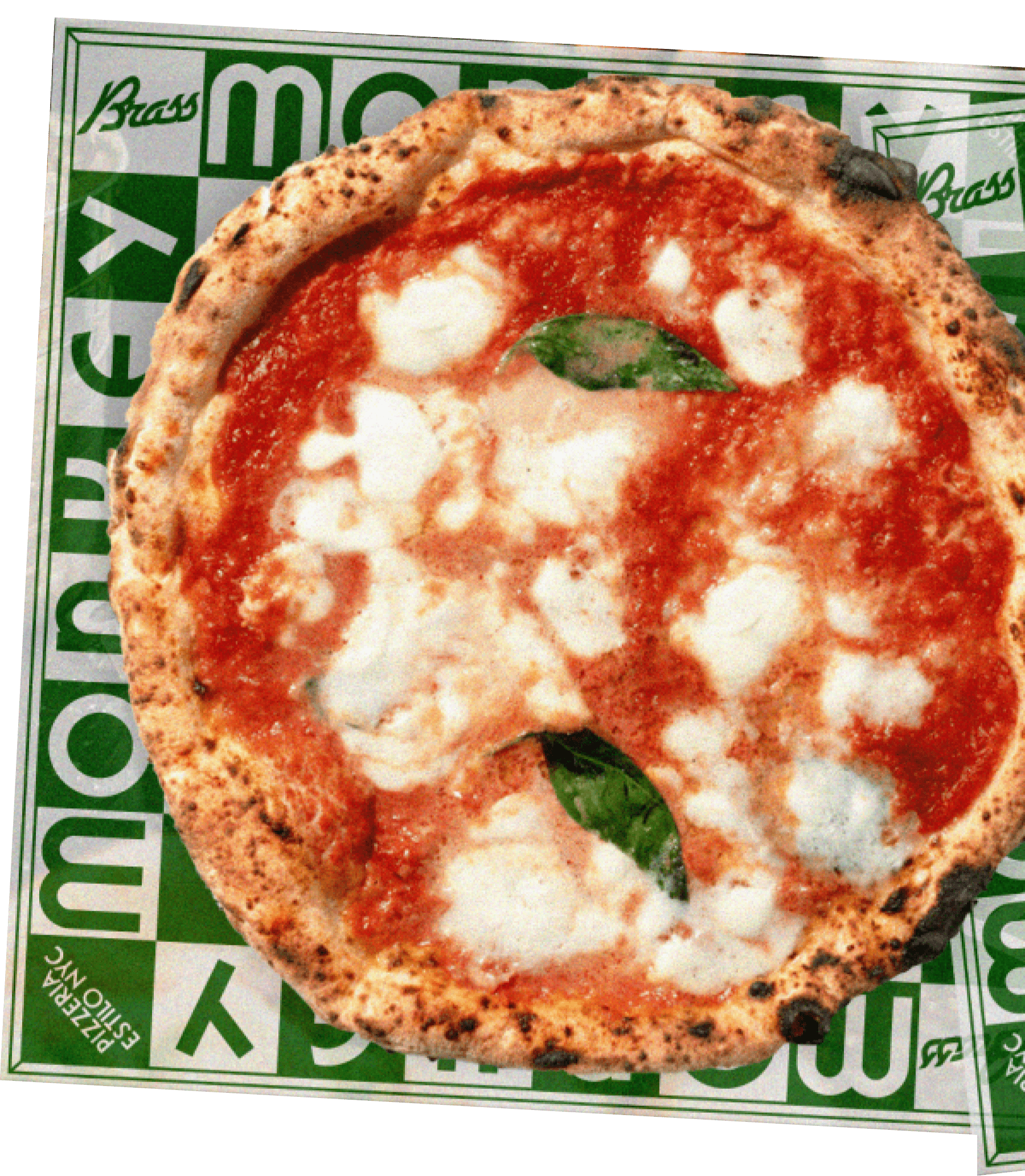Base gratinada con mozzarella banada en nuestras 3 salsas: marinara vodka sauce* y pesto Una delicia que esta en tendencia